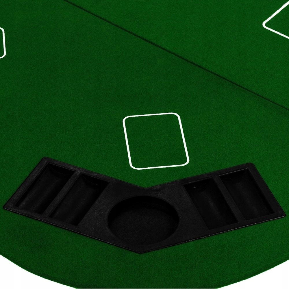 Стільниця для гри в покер виготовлена з МДФ високої щільності, обшитої класичним зеленим матеріалом. У комплекті постачання йде сумка для перенесення із застібкою на блискавці.