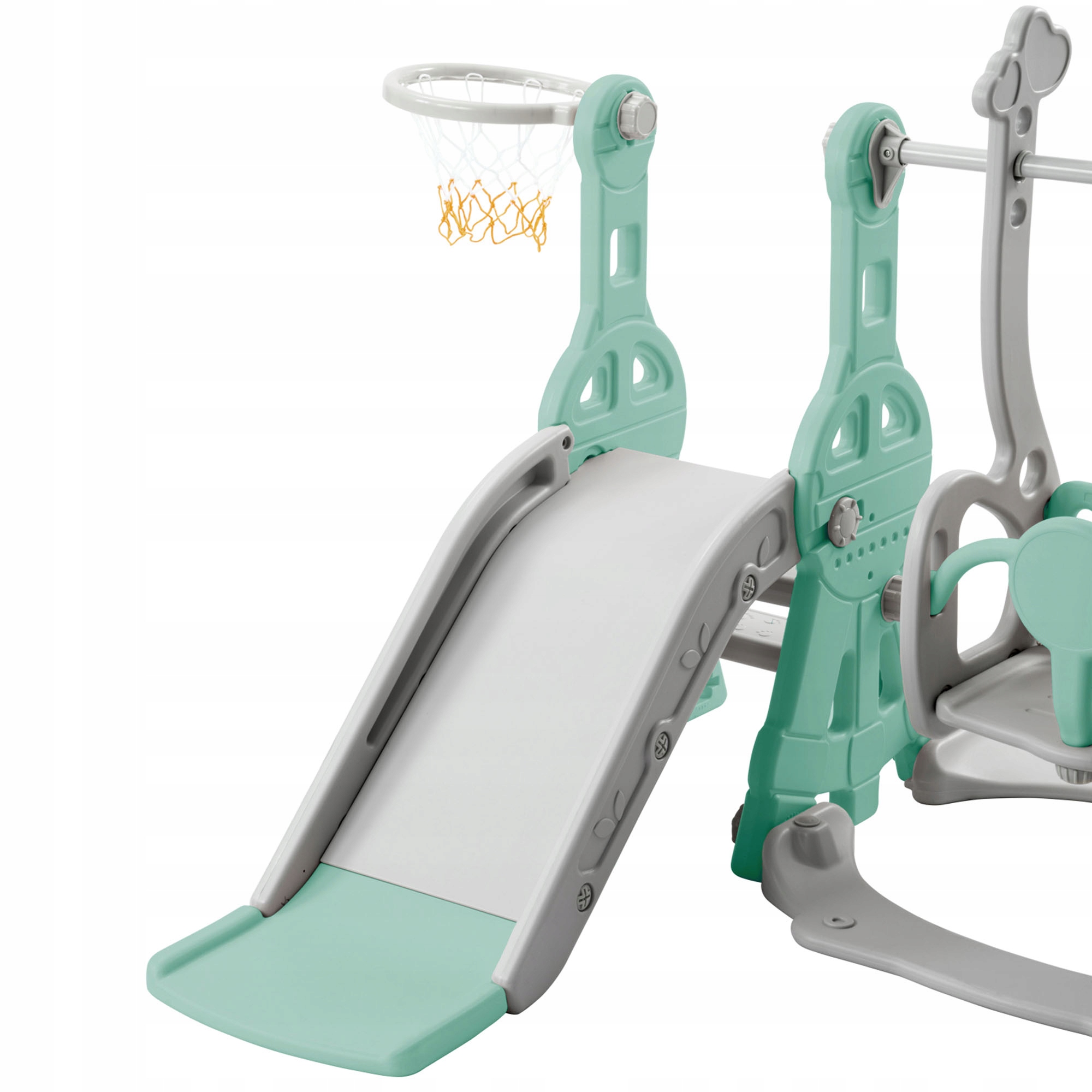 Цей багатоцільовий ігровий майданчик із широким вибором ігрових можливостей пропонує вашим дітям більше можливостей для розваги та вправ. Наш продукт пройшов сертифікацію серії EN71. Барвистий дизайн, безпечні матеріали та продуманий дизайн цього дитячого ігрового майданчика сподобаються дітям і захистять їх під час гри. Цей дитячий ігровий майданчик 4-в-1 обладнаний гіркою, сходами, гойдалкою, рамою, що гойдається, і баскетбольним кільцем. У цій ситуації ваші діти можуть насолоджуватися різними способами гри та гратися з друзями вдома. Детальний дизайн цього виробу гарантує безпеку ваших дітей під час гри. А гуманізована конфігурація цього продукту враховує не тільки безпеку дітей, а й простоту встановлення для батьків. Цей ігровий майданчик 4-в-1 — чудовий вибір для дітей у приміщенні або на вулиці.