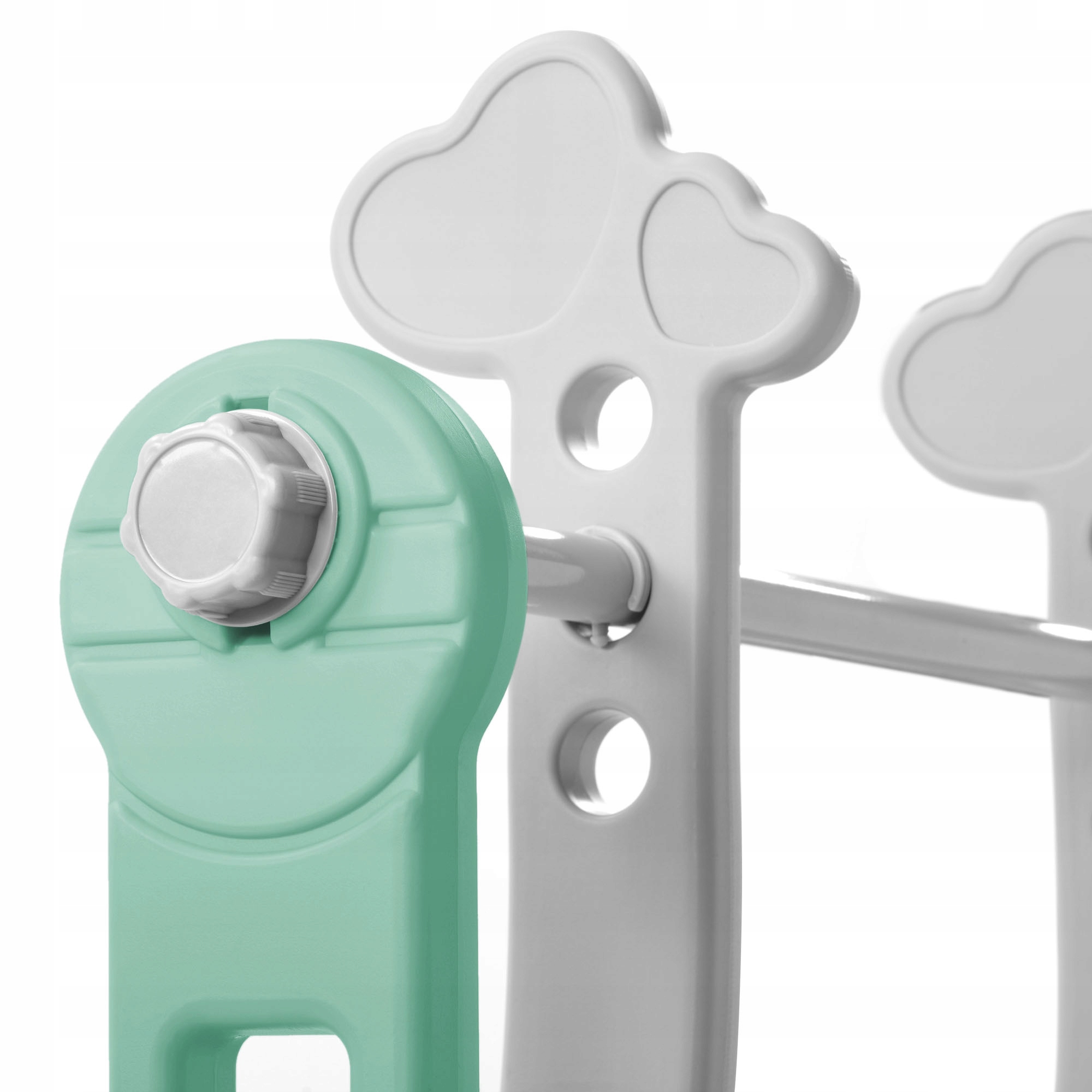 Цей дитячий ігровий майданчик 4-в-1 обладнаний насосом і відповідним баскетбольним м'ячем. Користувачі можуть використовувати всі функції після під'єднання після отримання. Логічний посібник з експлуатації допоможе користувачам правильно зібрати цей ігровий майданчик. Висота гойдання іграшки регулюється для дітей різного зросту.