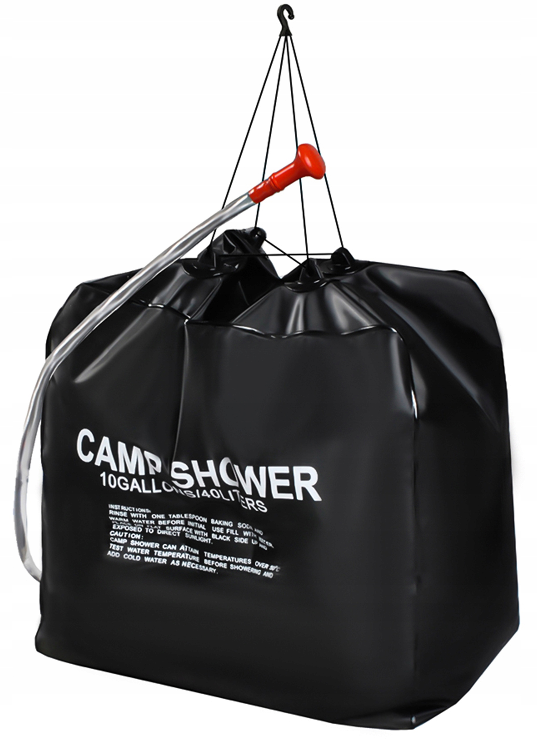 Незаповнений душ легкий і займає мало місця — наприклад, він легко поміщається в рюкзак. Душ можна повісити на будь-який виступ, стійкий елемент - наприклад, ручку, стрижень, трубу та навіть гілку дерева (один раз врахуйте, що повний душ може вабити багато — виберіть правильне місце для підвішування для кількості води, яку ви заливаєте).